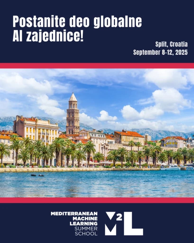 Mediteranska letnja škola mašinskog učenja (M2L) ponovo okuplja talentovane istraživače i profesionalce iz oblasti veštačke inteligencije. M2L 2025 će se održati od 8. do 12. septembra na Fakultetu elektrotehnike, strojarstva i brodogradnje (FESB) u Splitu, Hrvatska.